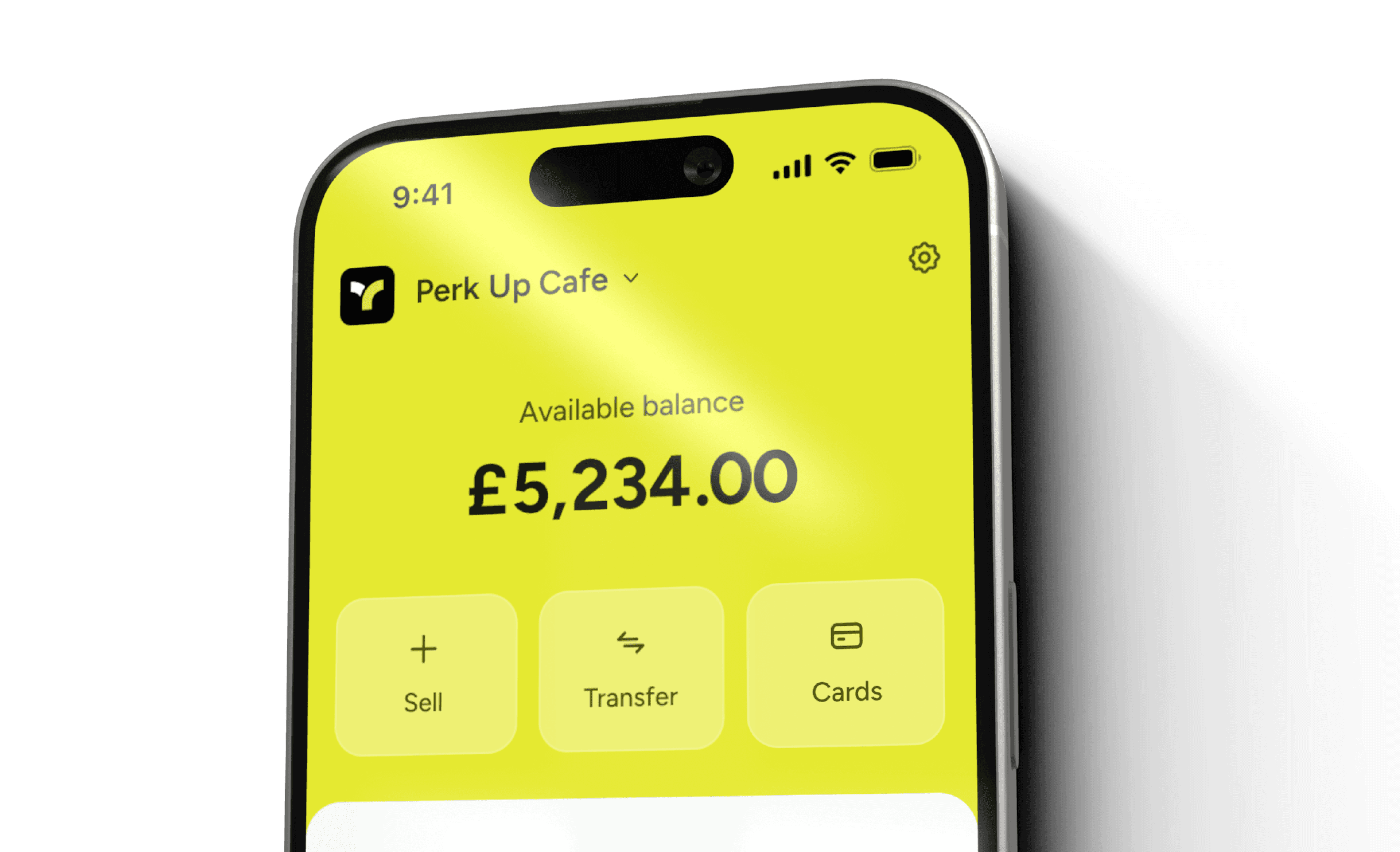 Get a clearer snapshot of your business as soon as you open the app. If you have a Teya Business Account, quick actions like Sell, Transfer, and Cards are just one tap away.